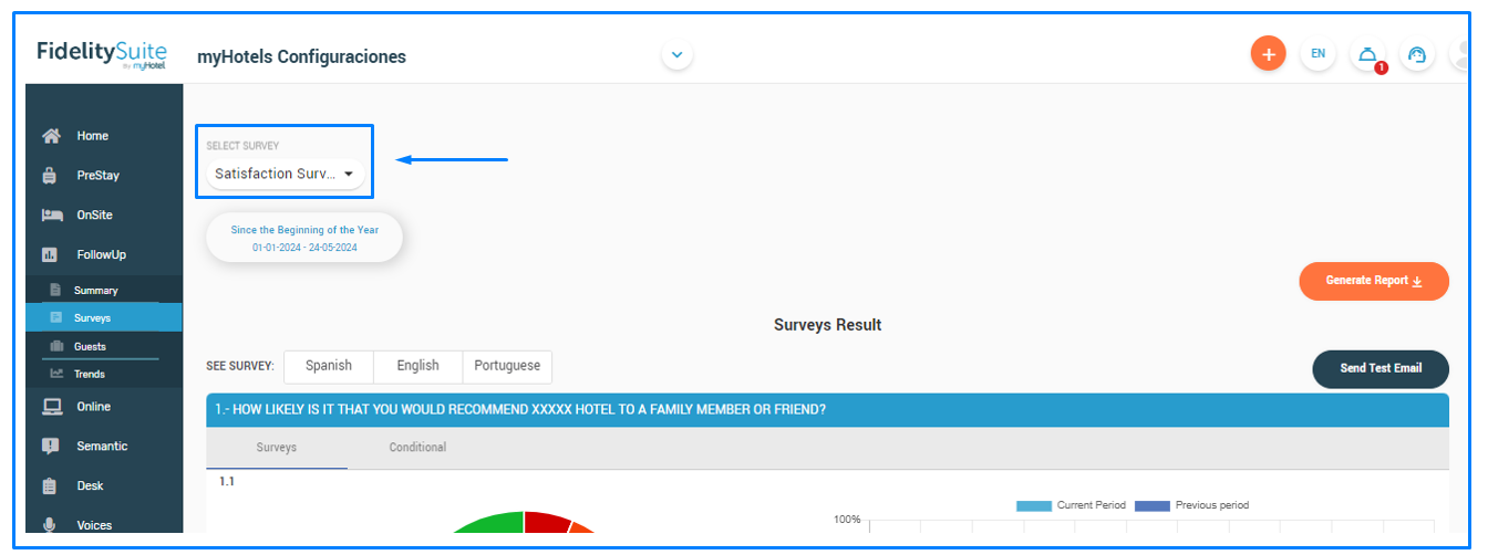 If you need to review the surveys that the hotel currently has and the invitation mailings sent to guests, you can do so by following a few steps.