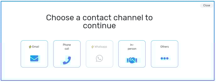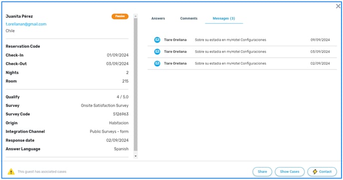 3.- Next, you will see the contact options. If these options appear in gray, it means that there is no information available to contact the guest in that manner (e.g., surveys without a valid email address or phone number):