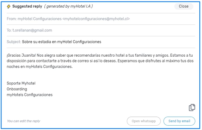 4.- By choosing Email ⚡ or Whatsapp ⚡, a smart response will be generated, which you can edit before sending.