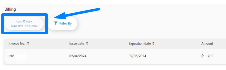 Once you have selected the period, the platform will show you the pending and paid invoices. This with the details of each one, such as issue date, due date, amount, currency, payment date and status.