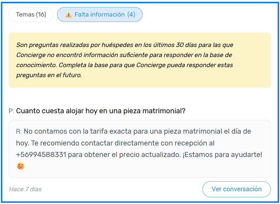 ¿Cómo saber si falta información en mi Base de Conocimiento de Concierge?