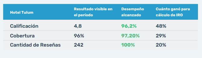 El IRO es el promedio ponderado de la calificación promedio de los sitios de opiniones, la cobertura y el número de reseñas generadas por tus huéspedes.