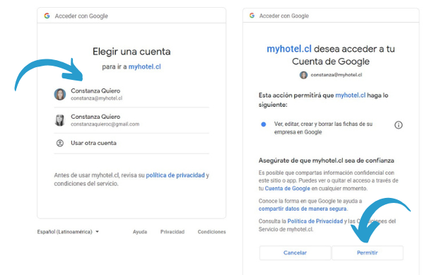 4. Elige la cuenta que quieras conectar y permite el acceso a myHotel