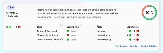 2. Acá debes buscar el comentario que deseas editar. Ahora debes desplegar el detalle del análisis semántico, esto desde la parte inferior derecha del comentario, en el botón Ver Detalle.