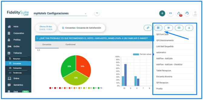 ¿Cómo puedo obtener/descargar el QR o enlaces para compartir mis encuestas en el Hotel?