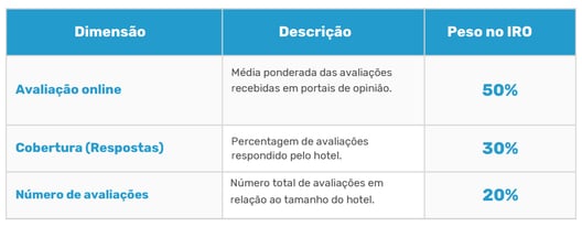 O IRO é calculado por meio de um algoritmo que combina três dimensões ponderadas de