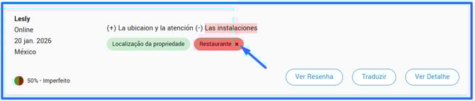 Ao removê-lo, os indicadores associados ao comentário serão atualizados automaticamente. Tenha em mente que, por enquanto, o sistema permite apenas remover temas mal atribuídos, não adicionar novos.