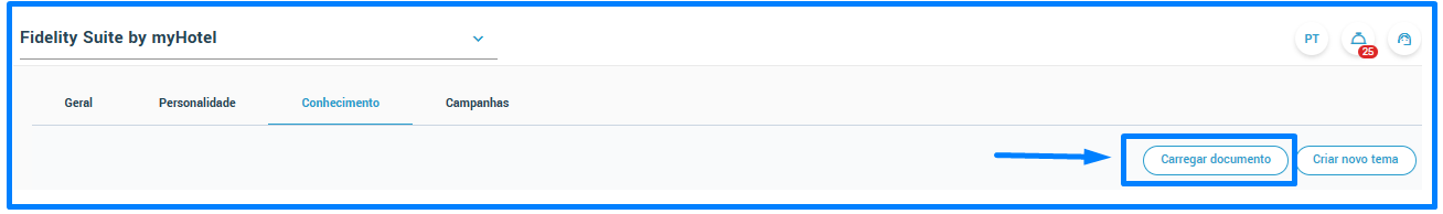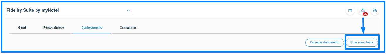 A informação pode ser carregada manualmente, escrevendo dentro de cada Área - Tema; se faltar algum Tema dentro de uma área, é possível criá-lo a partir do botão "Criar novo tema":