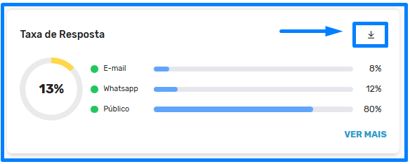 2. Já na seção Resumo, você deve procurar o quadro chamado Taxa de Resposta, neste quadro você encontrará o botão para baixar o relatório:
