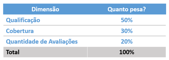 Para o cálculo do IRO, a dimensão QUALIFICAÇÃO pesa 50% do índice total. Ou seja, a pontuação que o hóspede dá ao hotel é o aspecto mais importante da reputação online.