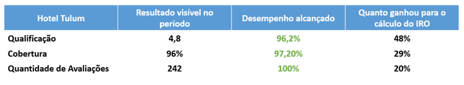 O IRO é a média ponderada da qualificação média dos sites de opiniões, da cobertura e do número de avaliações geradas pelos seus hóspedes.