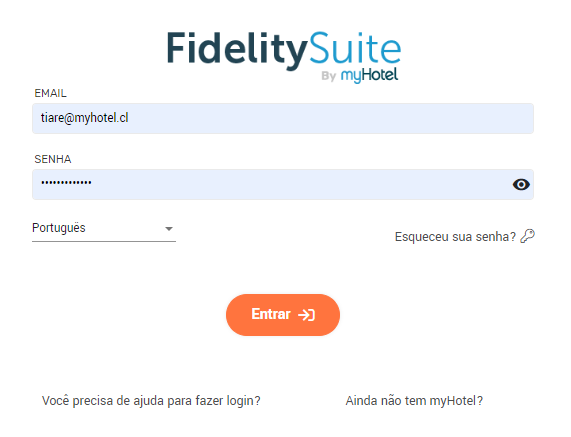 1. Faça login com seu nome de usuário e senha na plataforma myHotel https://fidelity.myhotel.cl/login